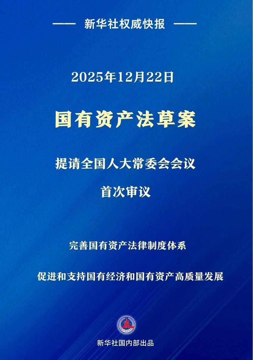 国有财富法草案12月22日提请十四届寰球东说念主大常委会第十九次会议初次审议。制