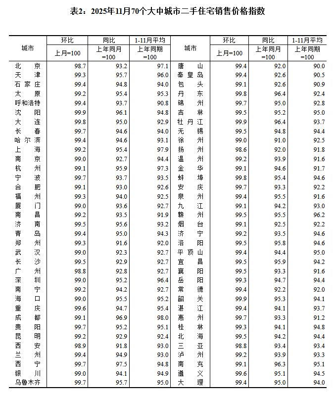 与新址不同,二手房商场仍在深度休养。国度统计局数据浮现,11月份二手房价同、环比均无城市高涨,一经纠合三个月出现全跌场合。