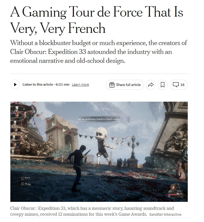 直播吧12月13日讯 据外媒报说念,近日《光与影33号远征队》建树商Sandfa